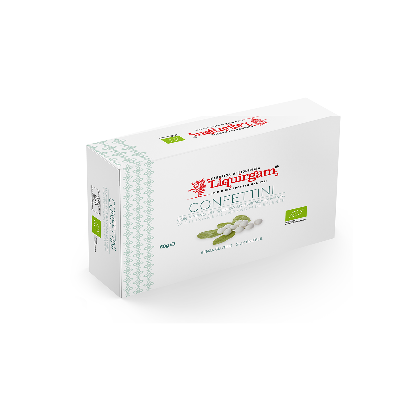 Confettini con ripieno di liquirizia biologica ed essenza di menta