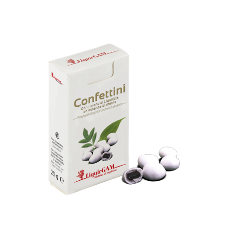 Confettini con ripieno di liquirizia D.O.P. biologici ed essenza di menta