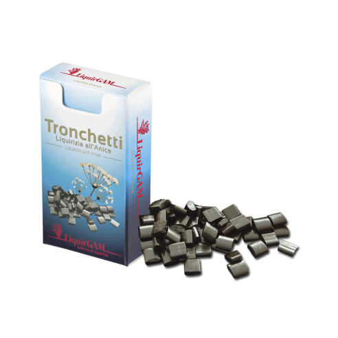 Questi tronchetti sono dei piccoli frammenti irregolari di pura liquirizia aromatizzata con essenza naturale di anice.Un estratto di liquirizia arricchito da una delicata aroma di anice che esalta il sapore inconfondibile della Liquirizia di Calabria.